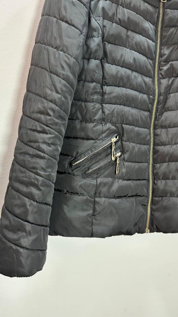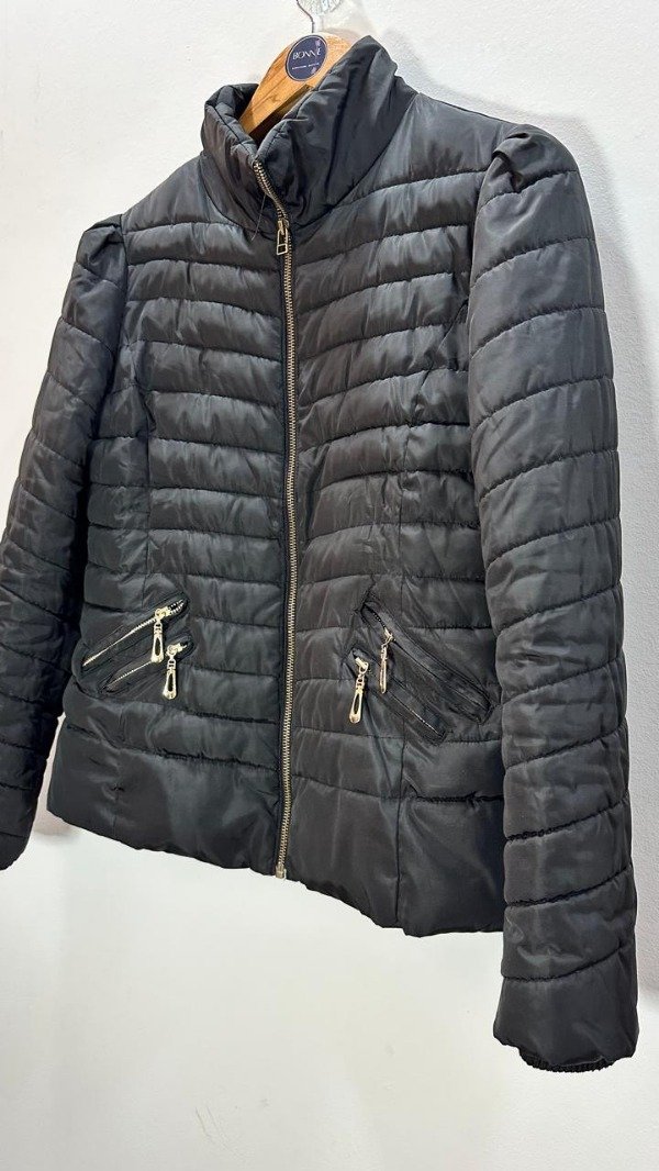 Puffer color negro. Bolsillos laterales con cierre. Detalle de cierre en la espalda baja.