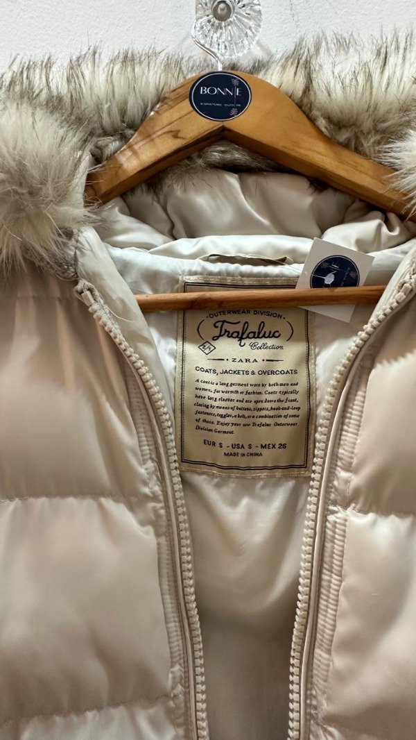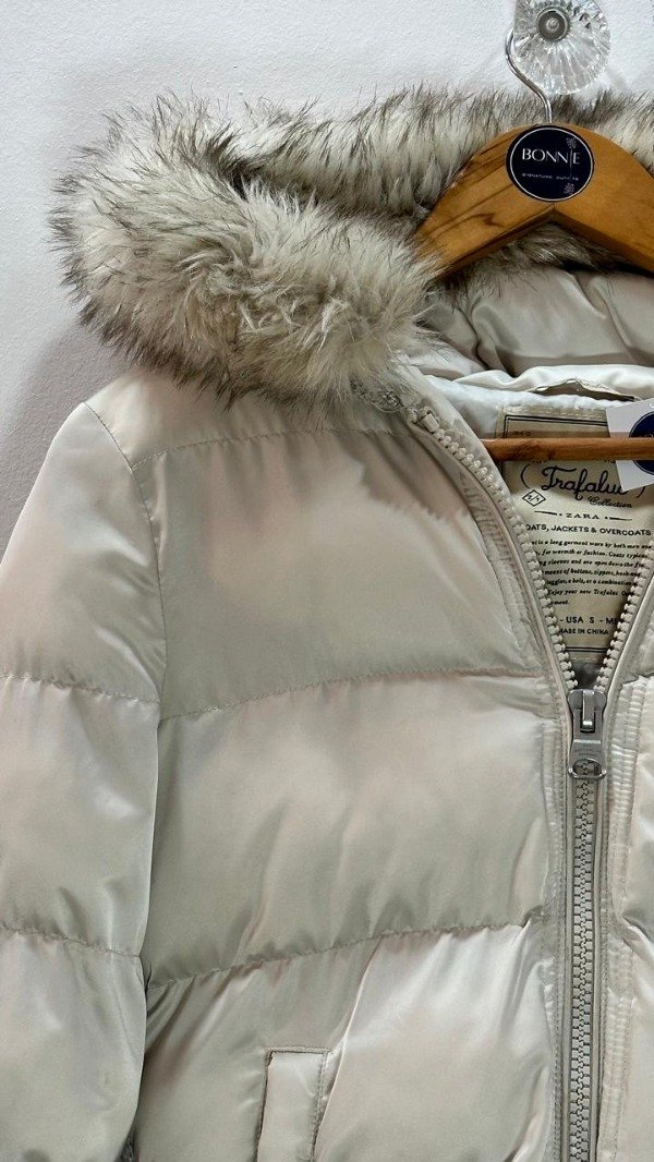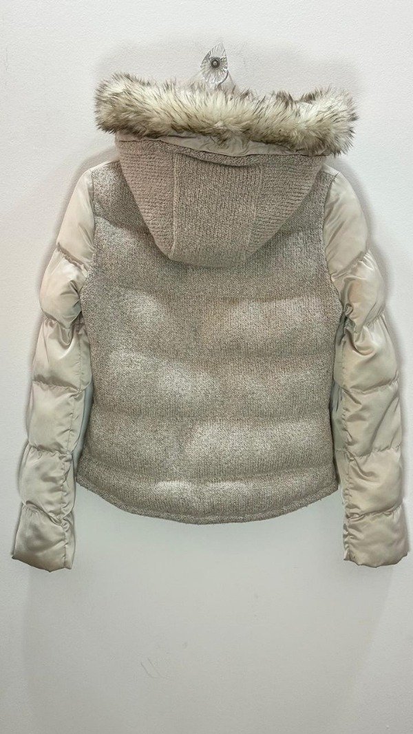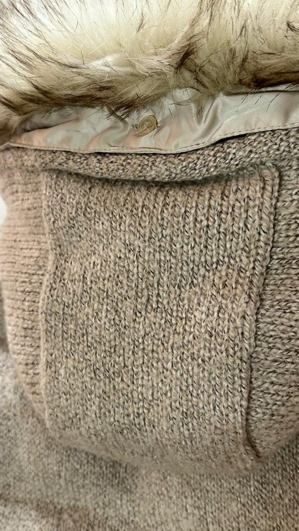 Capera de plumas con espalda tejida melange.Capucha con piel desmotable, bolsillos con broches