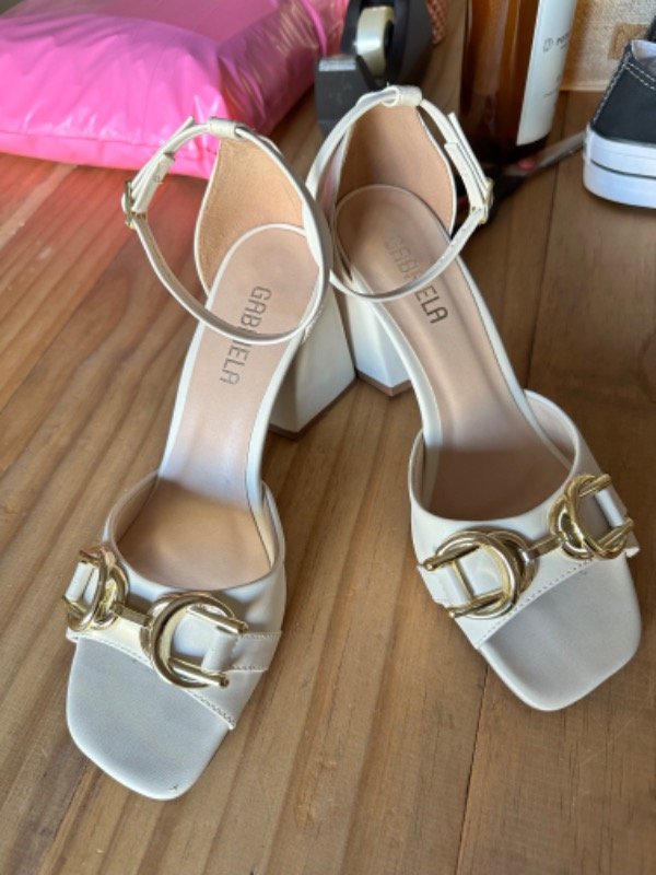 Sandalias crudo eco cuero con hebilla dorada modelo Gucci