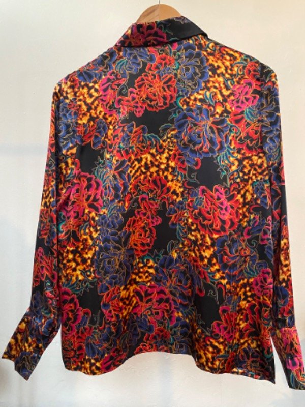 Ayres talle S - Camisa de satén estampa en flores, puño con botones.