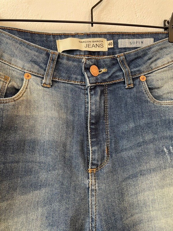 Jean chupin super elastizado ! con desgaste y roturas del diseño, tiro alto